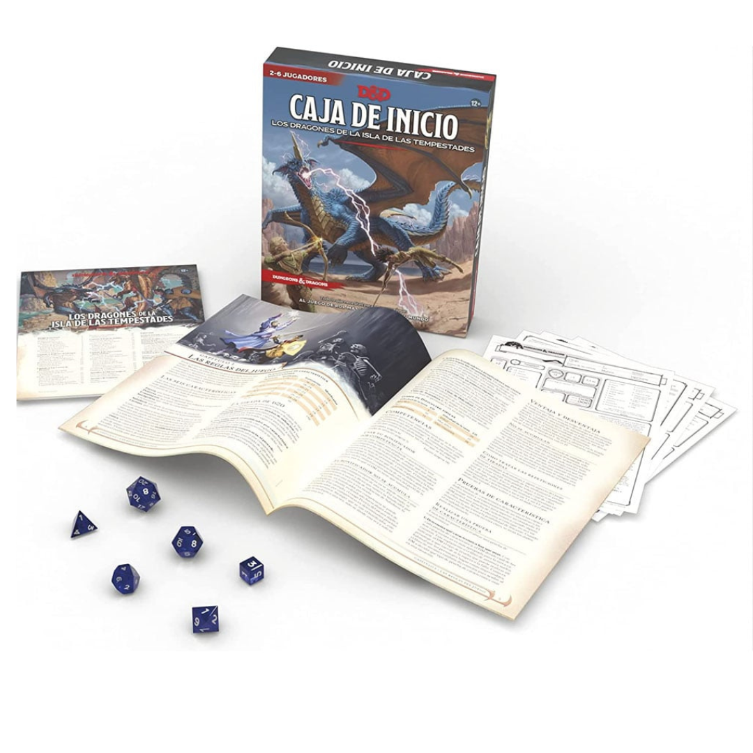 Caja de inicio: Los dragones de la Isla de las Tempestades te abre las puertas a trepidantes aventuras en el juego narrativo cooperativo de Dungeons & Dragons, donde los héroes se enfrentan a monstruos, buscan tesoros y emprenden misiones épicas. Esta caja contiene las reglas esenciales del juego y todo lo que necesitas para interpretar a personajes heroicos que se ven involucrados en una guerra ancestral entre dragones mientras intentan descubrir los secretos de la Isla de las Tempestades.