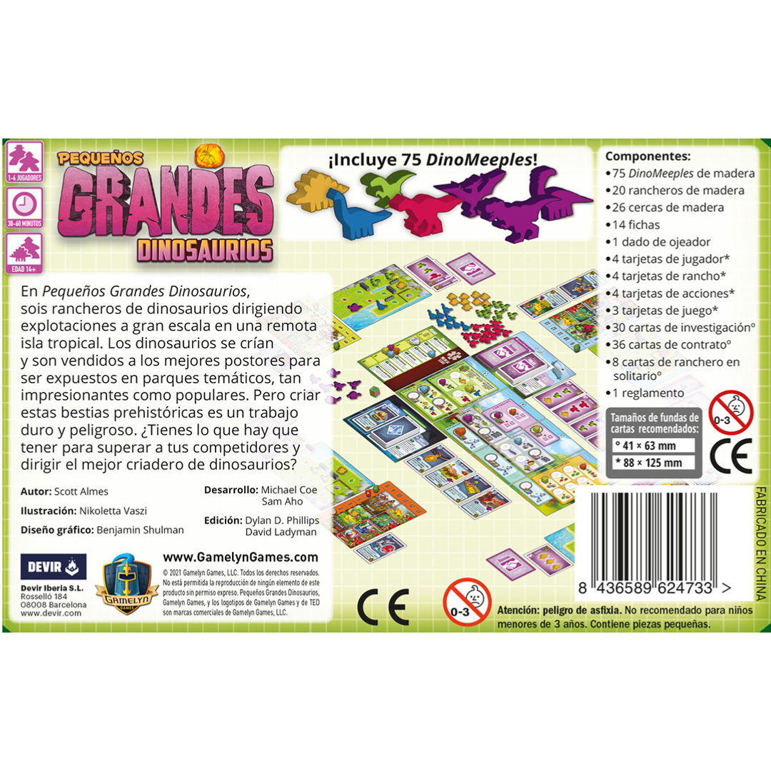 Esta es la reseña de Pequeños grandes dinosaurios, juego de mesa tipo “euro” de Devir, para jugar a partir de 12-14 años, de 1 a 4 jugadores. Forma parte de la serie de juegos “Pequeños grandes…”, que tiene otros títulos con diferentes temáticas.