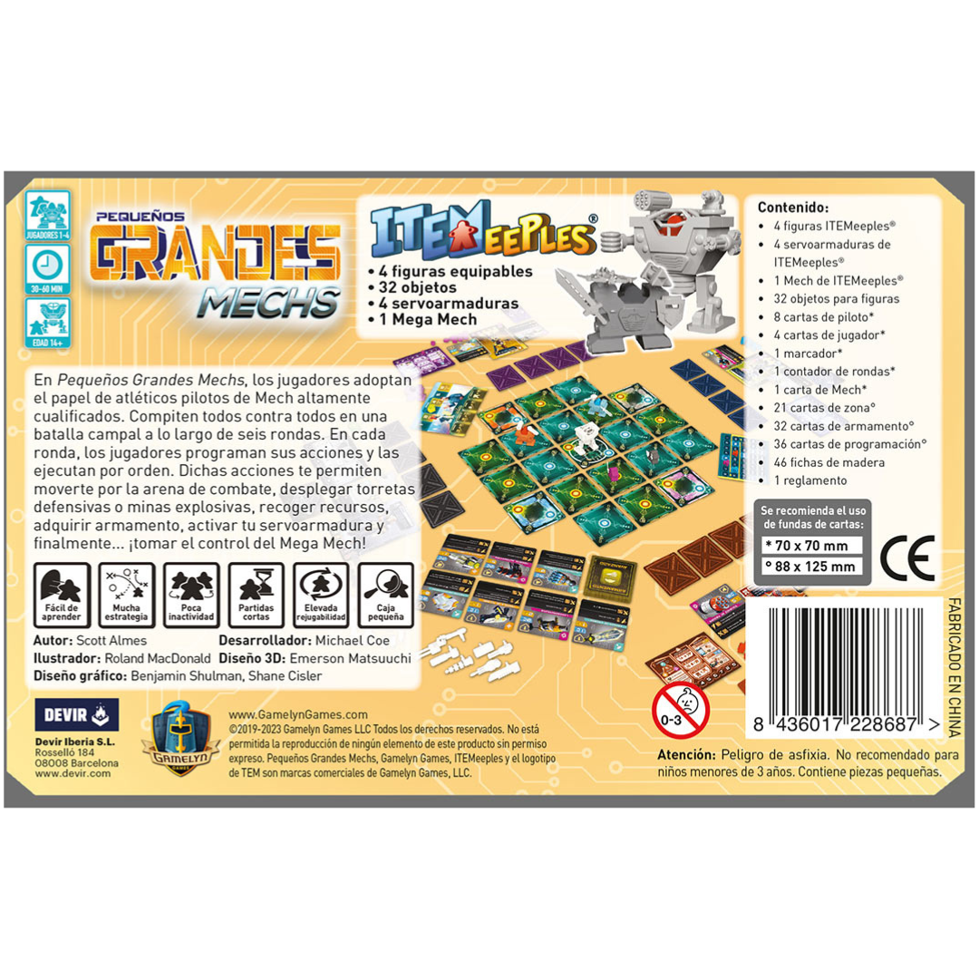 Pequeños Grandes Mechs, una nueva entrega de la serie Tiny Epic de Scott Almes (Claim, Lovelave & Babbage). El juego fue publicado en 2019 por Gamelyn Games tras una exitosa campaña de financiación mediante micromecenazgo. De las ilustraciones se encarga Roland McDonald (Battle Line: Medieval, Western Legends).