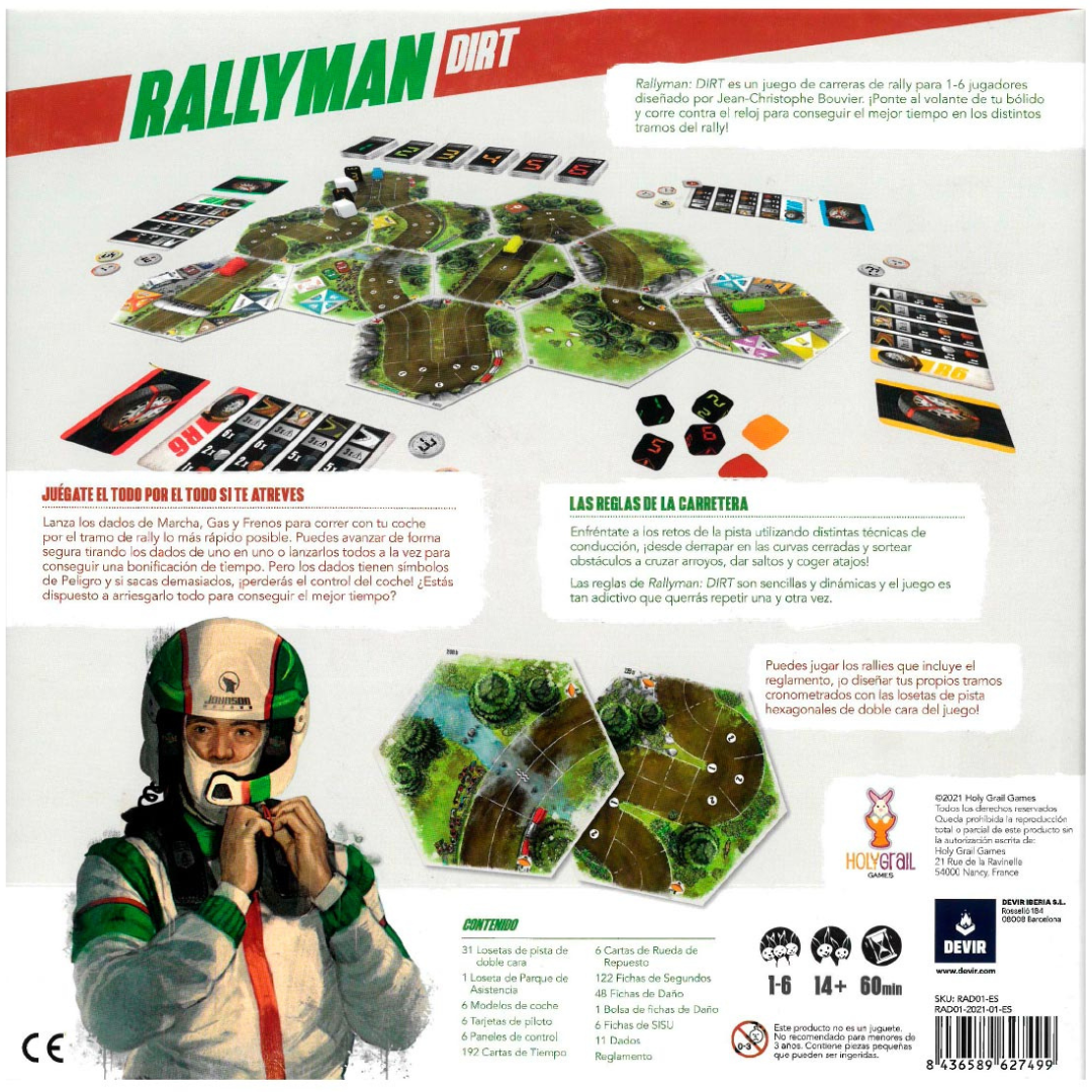 Rallyman DIRT es un juego de tablero en el que te enfrentarás a la emoción de un apasionante rally. Ponte al volante de tu coche y consigue el mejor tiempo en los distintos tramos de la carrera. Tendrás que derrapar a toda velocidad en las curvas cerradas, sortear obstáculos, cruzar arroyos, coger atajos… todo para conseguir el mejor tiempo de todos los participantes. Con reglas sencillas y dinámicas, se convertirá en un juego adictivo con el que no podrás parar de jugar.